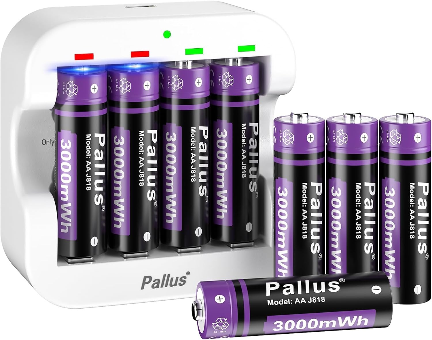 Rechargeable Lithium AA Batteries 8-Pack with Type-C Charger, 3000mAh, 2.5H Fast Charge, LED Display â Compatible with AA devices