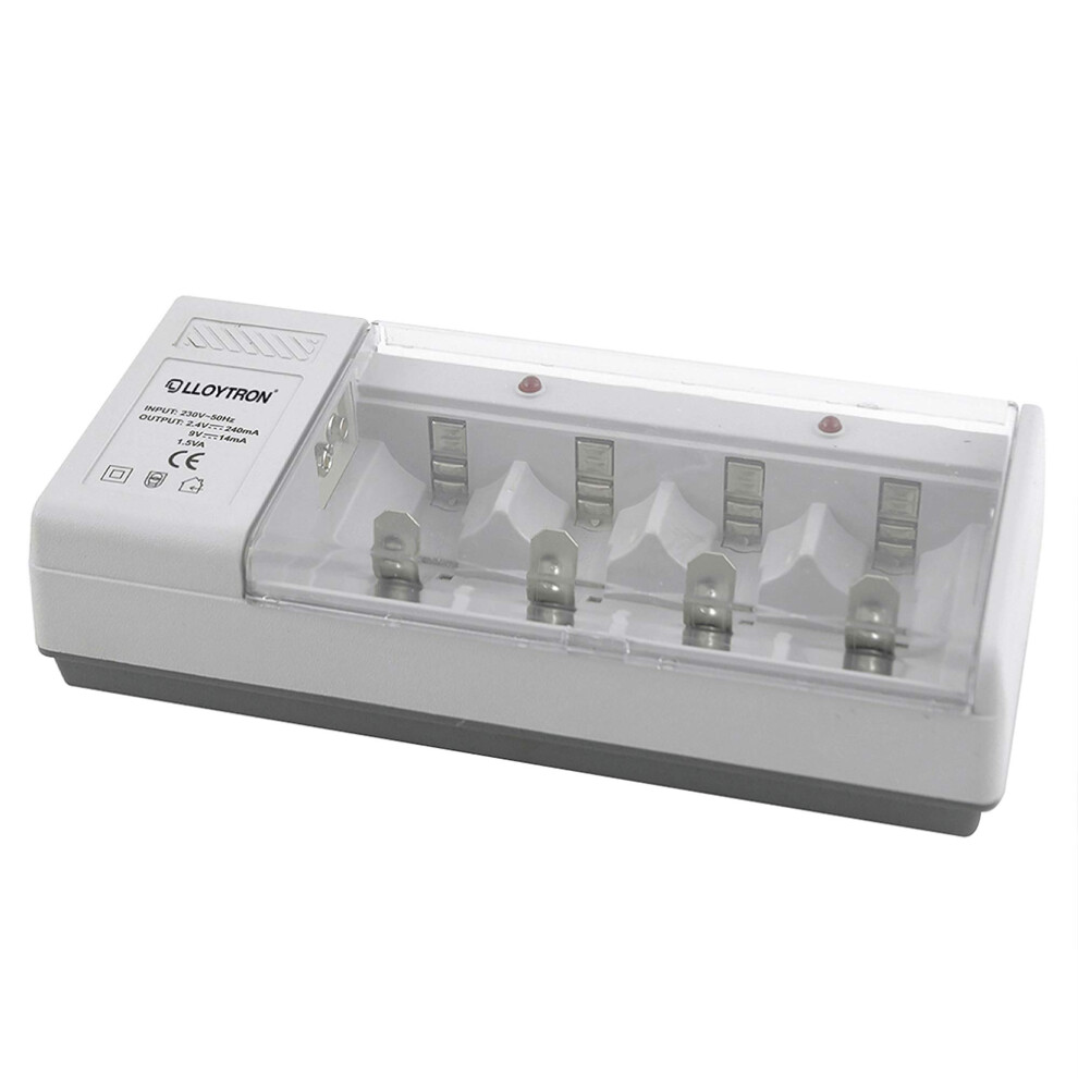 LLOYTRON Universal Home Battery Charger for AA / AAA / C / D / 9V (PP3) NiMh / NiCd Rechargeable Batteries - Charge 2 or 4 Batteries at Once - B044 -
