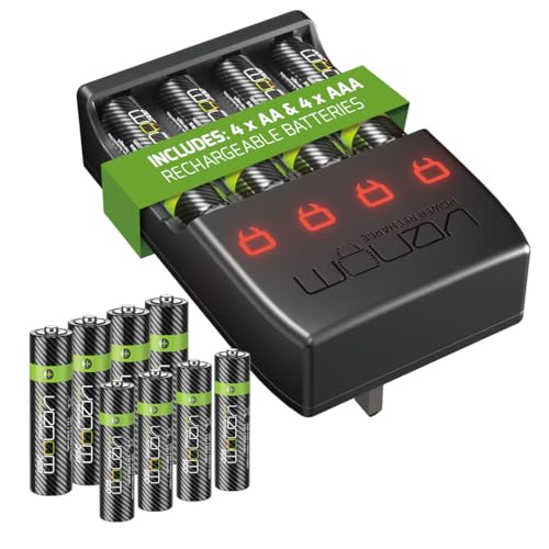 Venom Pro Charge Plug In Wall Battery Charger plus 4 x AA & 4 x AAA Rechargeable Batteries