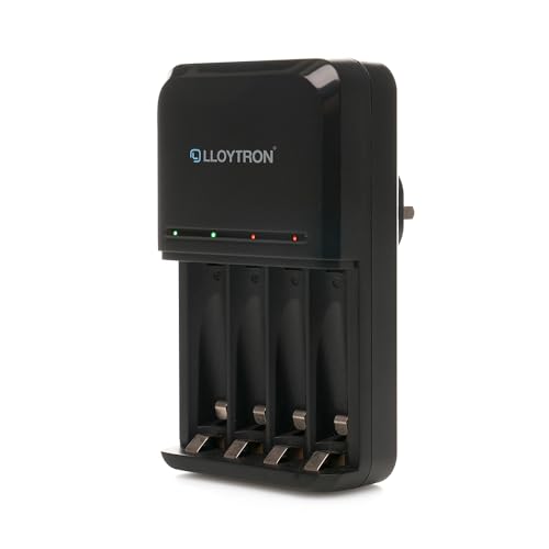LLOYTRON Ultra Fast Smart AA/AAA LCD Home Battery Charger for NiMh Rechargeable Batteries - Charge 1 or 4 Batteries at Once - Fully Charged Indicator - B1508 - Black