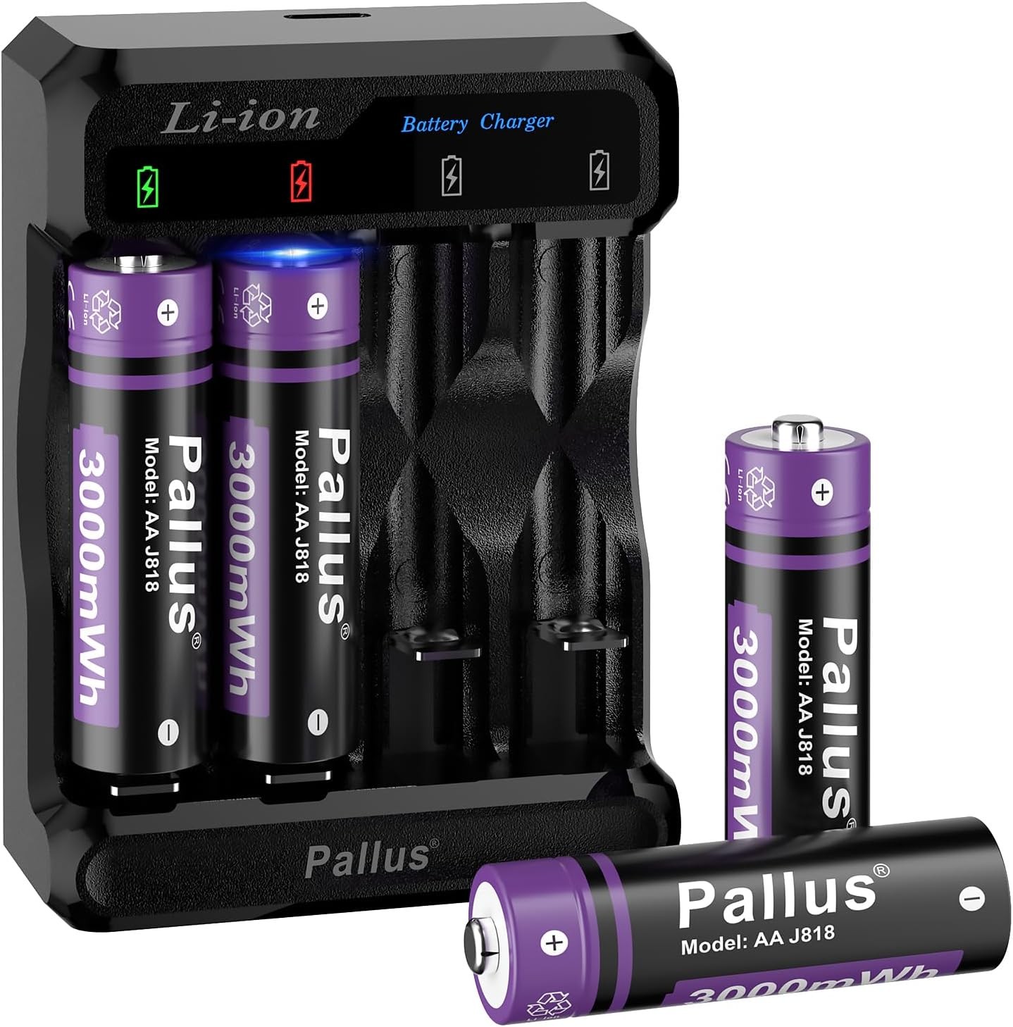 Rechargeable AA Lithium Batteries, 3000mWh High Capacity, 2 Hour Fast Charge wi