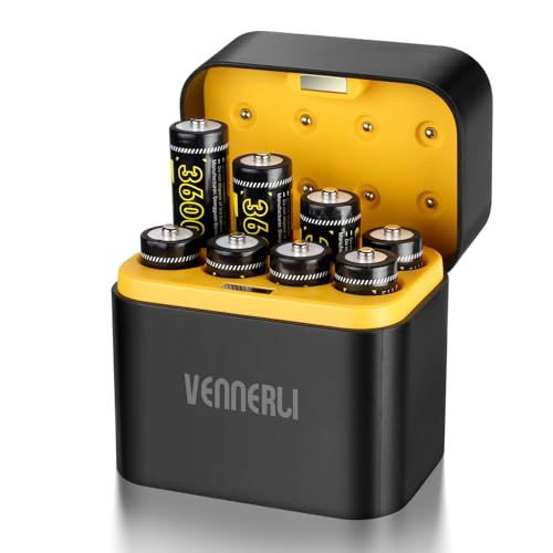 AA Rechargeable Lithium Batteries 1.5V 8-Pack Set 3600mWh High-Capacity 1000+ Cycles of Use Ultra-Long Lasting Time 3h Fast Charge with LED Charge Indicator Magnetic (Black 8-Pack&Charger)