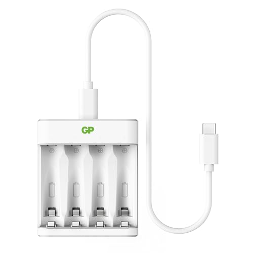 GP Charge & $ave LED 4-slot USB-C Rechargeable Battery Charger AA AAA, 4-hour charge, Fast charging for AA and AAA rechargeable batteries Safe auto cut-off