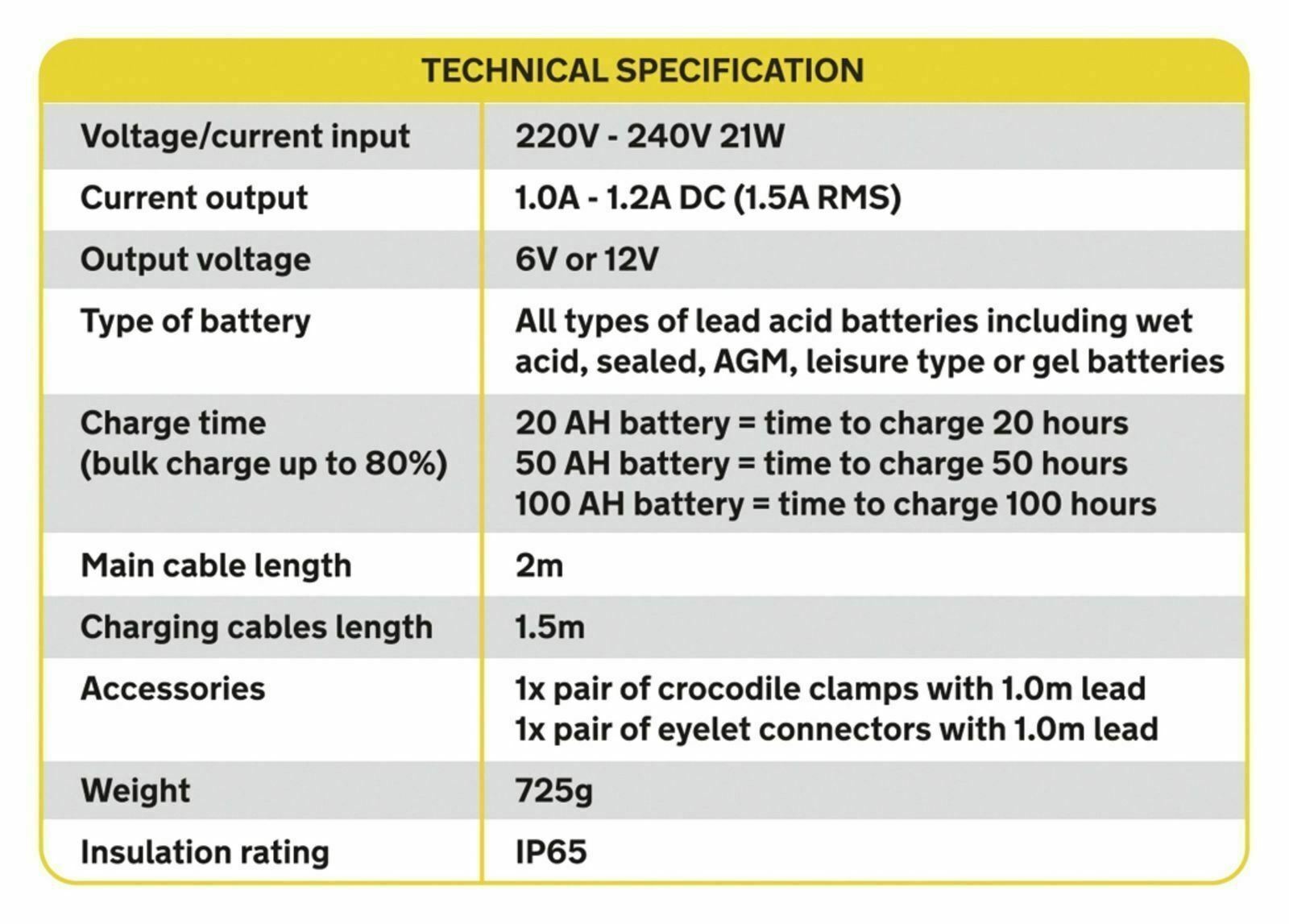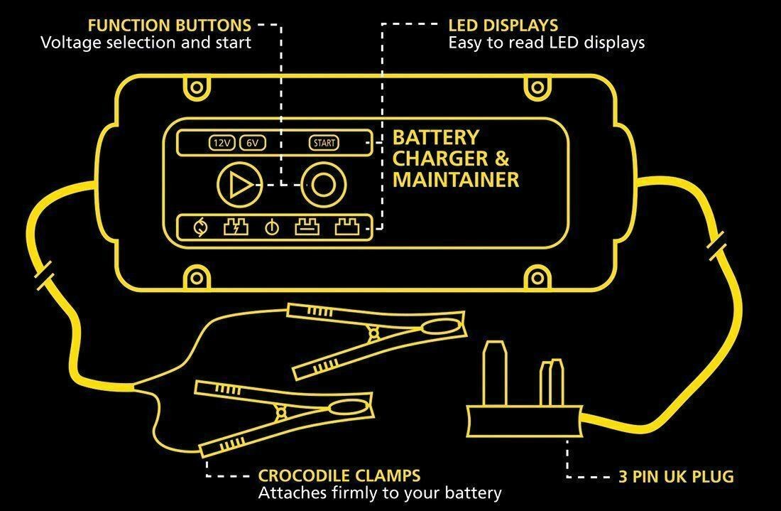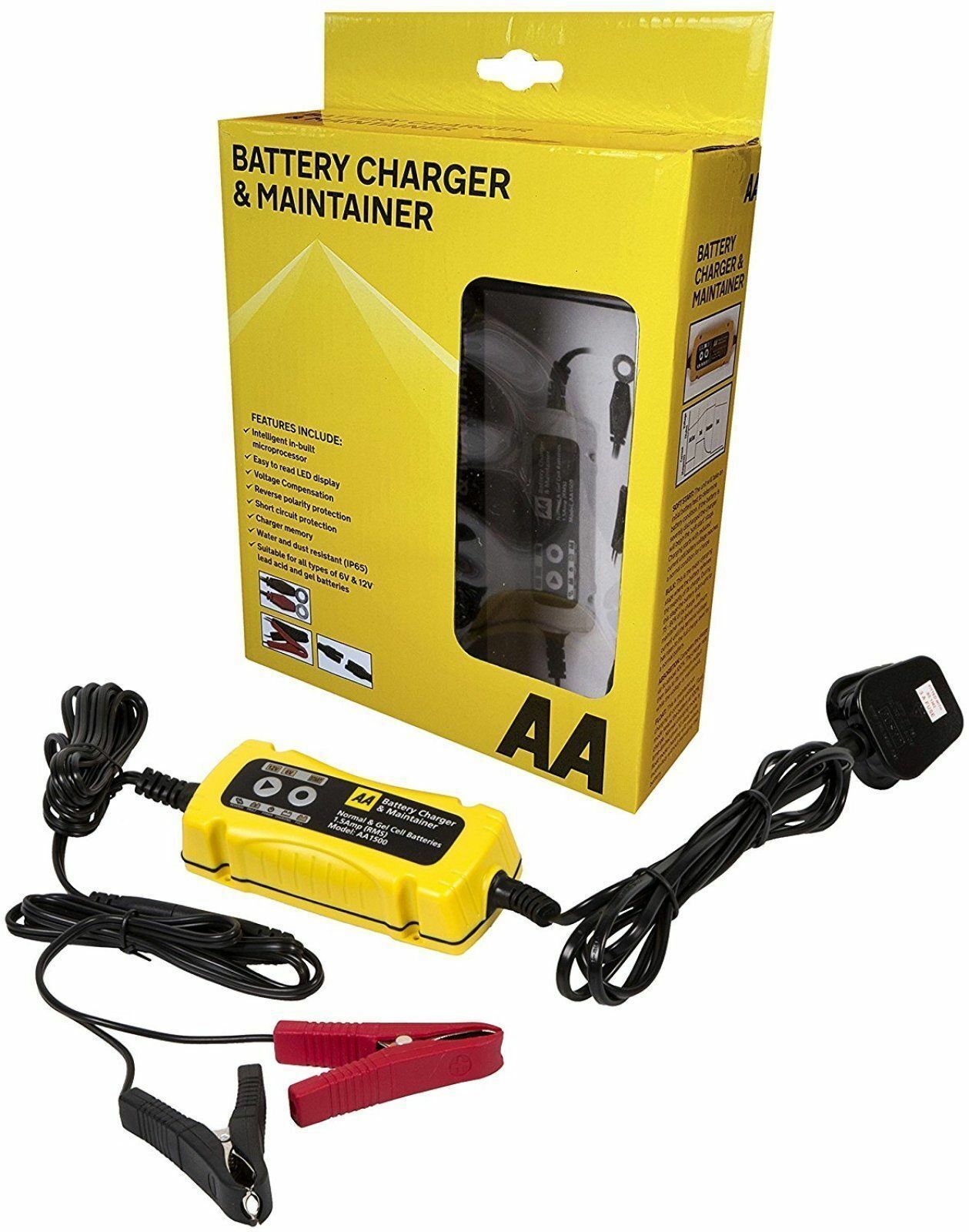 AA Smart Battery Charger Maintainer 1.5A for 6V & 12V Lead Acid, Black & Yellow
