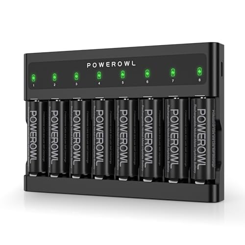 POWEROWL 8 Pcs 2800mAh Pro AA Rechargeable Batteries with 8 Slot Smart Battery Charger Set, USB Fast Charging for Ni-MH Rechargeable Batteries