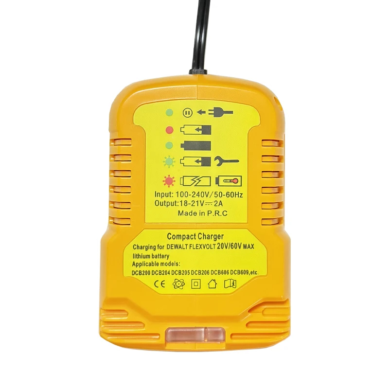 12V/24V 100-240V Li-ion Battery Mini Compact Car Charger for DeWalt 18V 20V 60V Lithium Battery DCB200 Replacement for DCB112