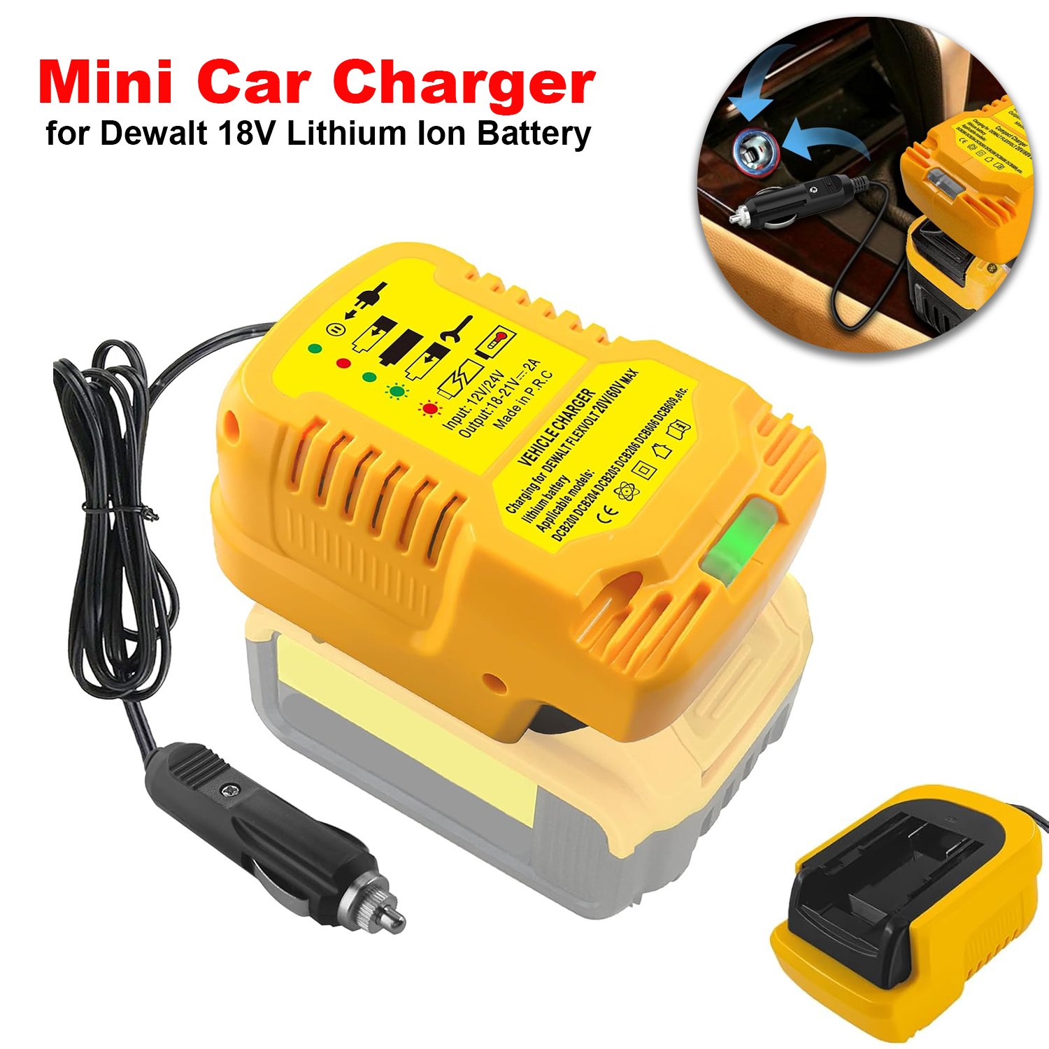 New DCB112 Car Charger for DeWalt 12V/20V Lithium Battery Cigarette Lighter Plug with LED Indicator DCB206 DCB120 Car Charger
