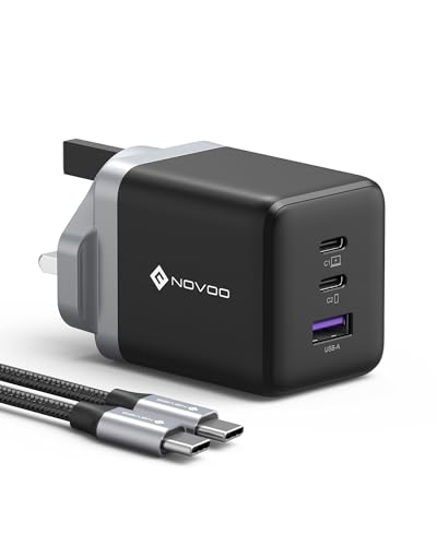 NOVOO USB C Charger, MacBook Pro/Air Charger, 3-Port 120W GaN Fast Charger, PD3.0, PPS, USB Plug UK, USB-C Laptop Charger for MacBook Pro, MacBook Air, iPhone 16/15, Galaxy S24/S23, iPad, Laptops
