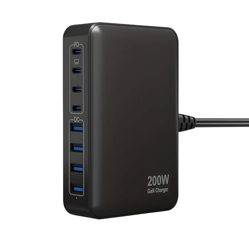 Multi USB C Charger 200W 8-Port GaN Desktop USB Charging Station with 4 USB-C & 4 USB-A Ports, 65W PD PPS Fast Charger for MacBook Air, iPad Pro, iPhone 16/15/14/13, Galaxy S25/S24/S23,Samsung A56,etc