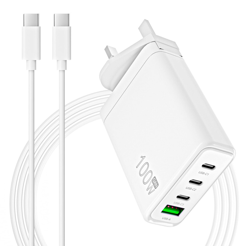 100W USB C Plug GaN Wall Charger 4Port Laptop Charger For MacBook Pro/Air HP Galaxy S23/S22 Matebook
