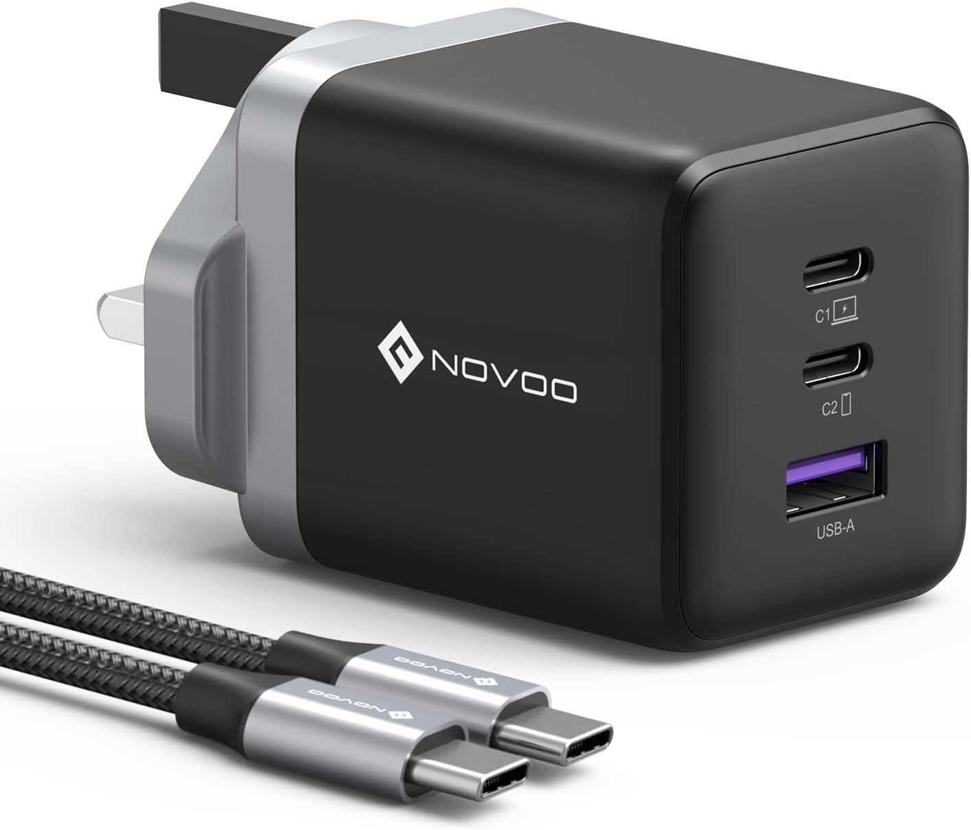 NOVOO USB C Charger, MacBook Pro/Air Charger, 3-Port 120W GaN Fast Charger, PD3.0, PPS, USB Plug UK, USB-C Laptop Charger for MacBook Pro, MacBook Air, iPhone 16/15, Galaxy S24/S23, iPad, Laptops