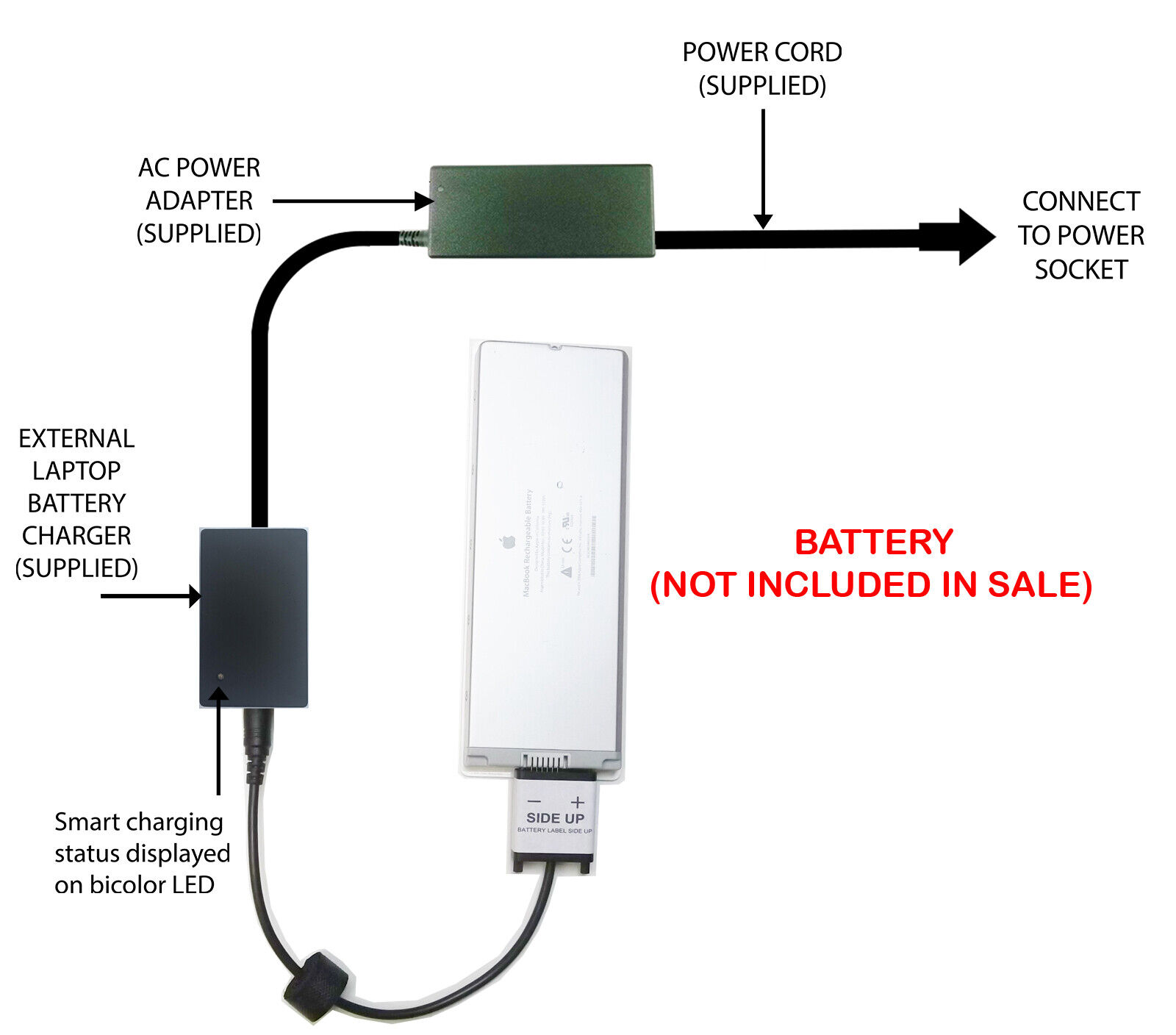 External Laptop Battery Charger for Apple MacBook 13.3" A1181, A1185 MA561 MA566