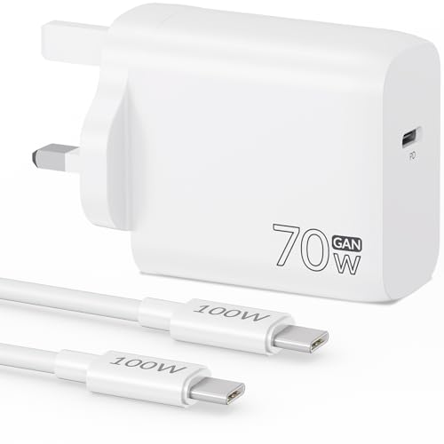 70W USB C Charger for MacBook Pro 16/15/14/13 Inch, MacBook Air 15/13 Inch, iPhone 17 Pro Max 17 Air, Laptop, 100W Super Fast Charging Cable Cord 2M + 70W USBC Power Adapter Plug UK Block
