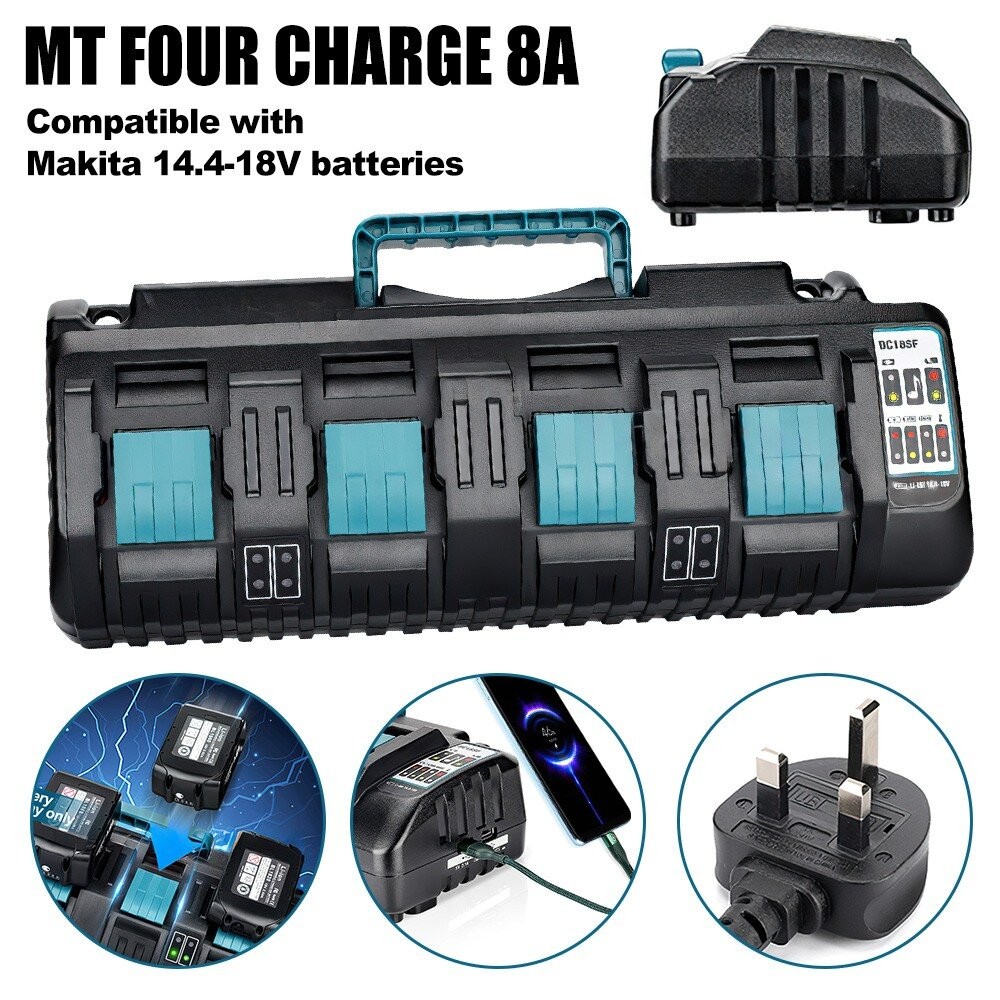 UK 4-Ports DC18SF Fast Charger 1pc For Makita Battery 14.4V-18V RCT LXT