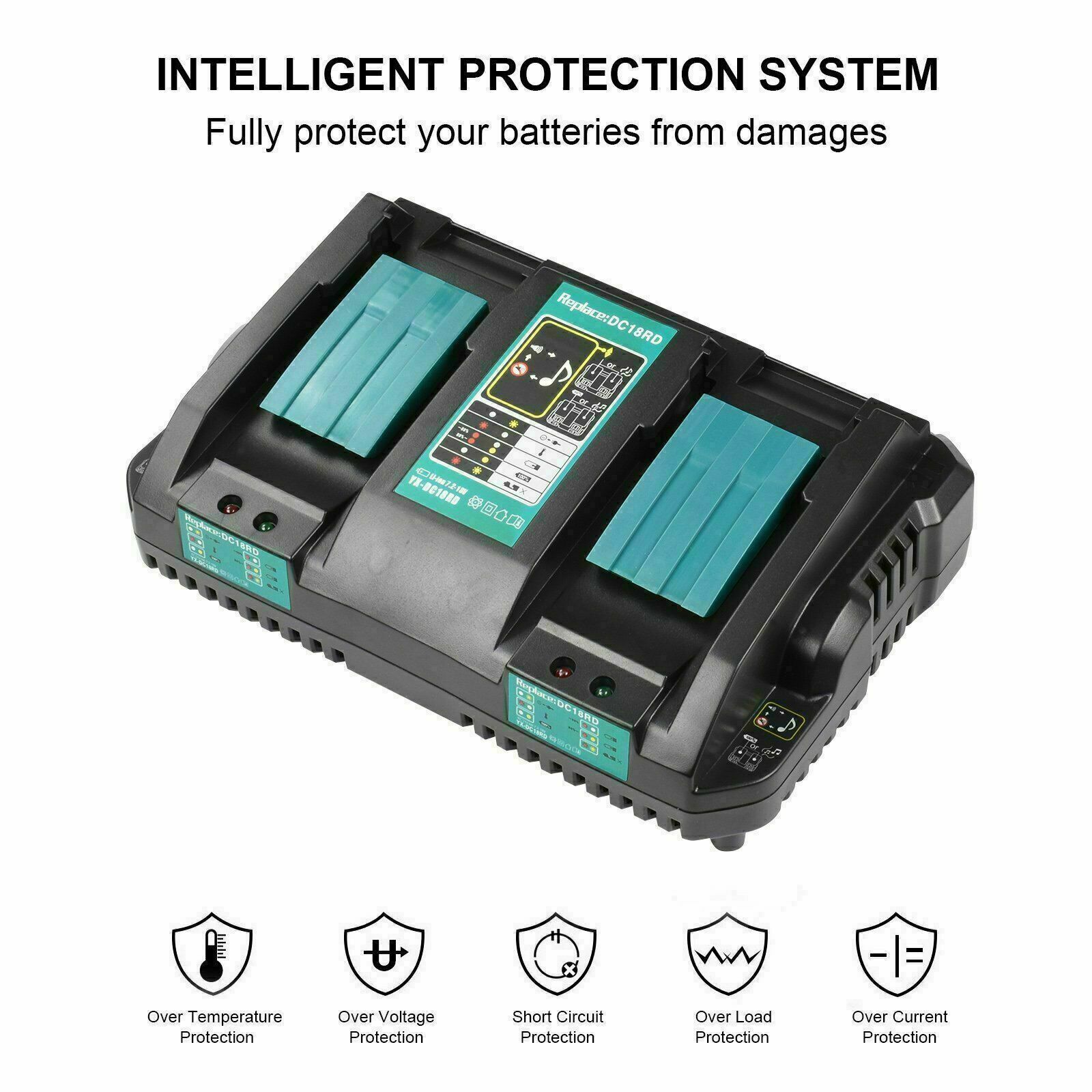 Lithium-ion Replacement: Rapid Dual Charging Port Charger for MAKITA 18V Battery with Extended Life and Enhanced Safety