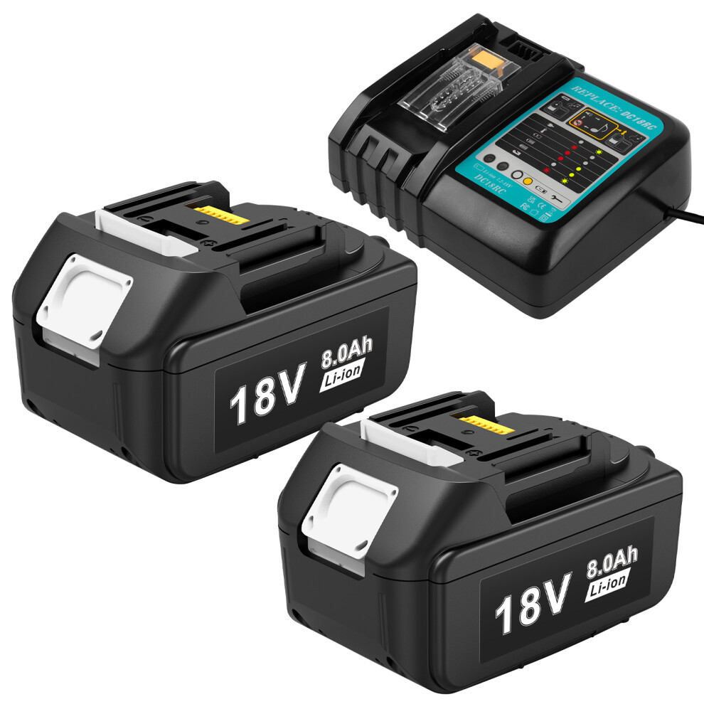 2PCS 8.0Ah Powerful Replacement Battery and Charger for Makita 18V Battery, Compatible with Makita 18 Volt Battery BL1860, BL1850B, BL1850830 BL1850