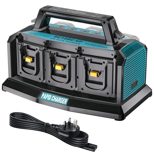 Adisipsoarin Super Battery Charger for Makita 18v lxt Battery, 6-Ports Simultaneous Rapid Charger Station Compatible with Malita 18v Li-Ion Battery and Tools DC18SF Chargers