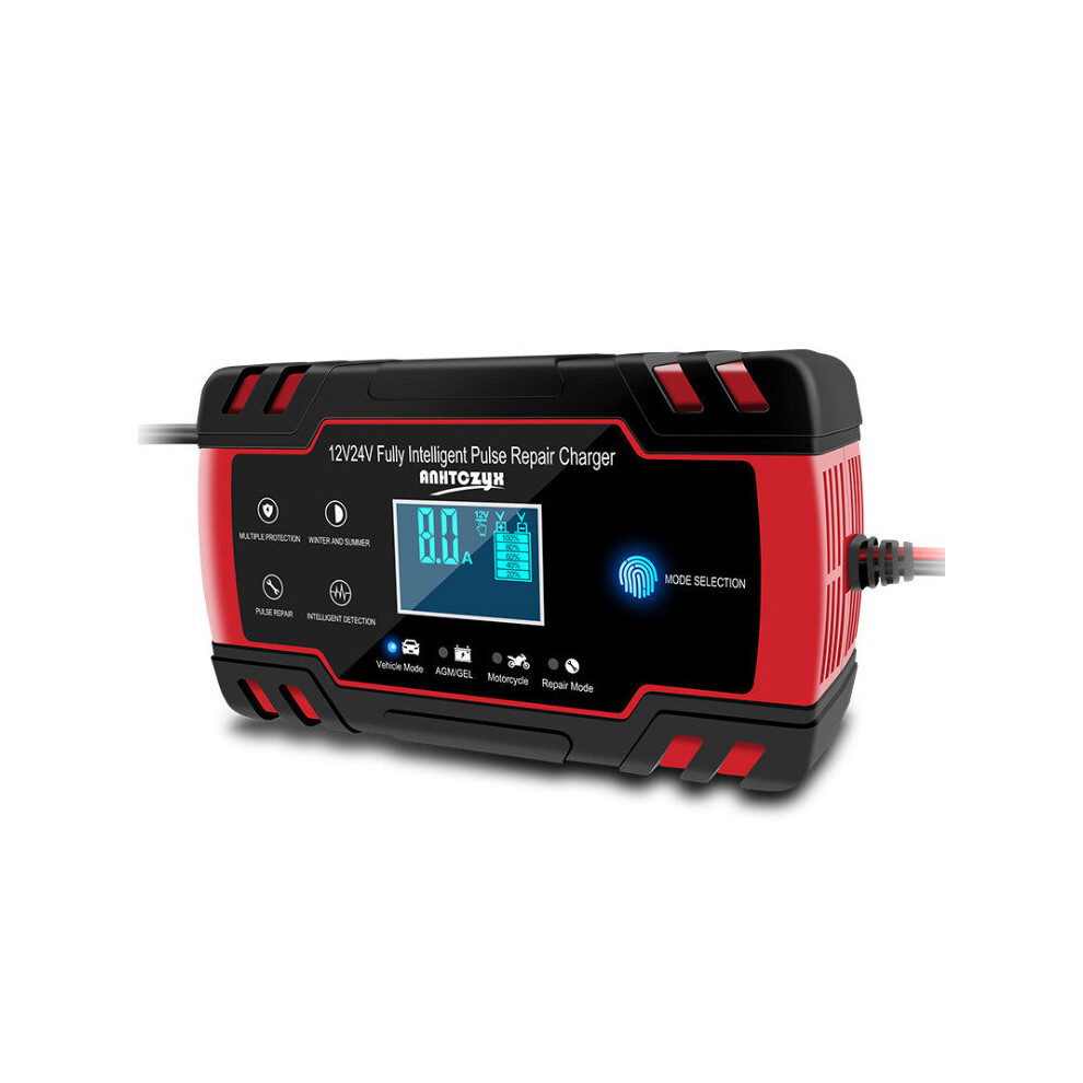 12V/24V 8A Touch Screen Pulse Repair LCD Battery Charger Red For Car Motorcycle Lead Acid Battery Agm Gel Wet