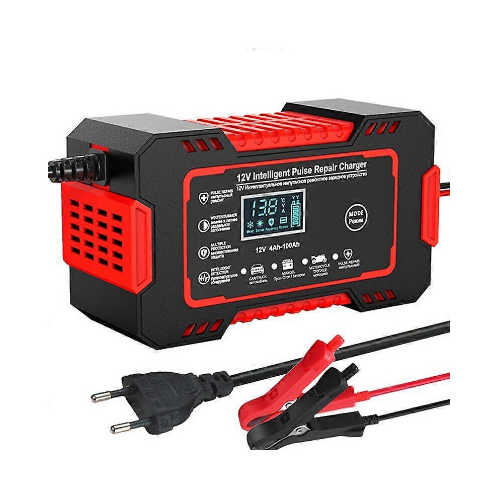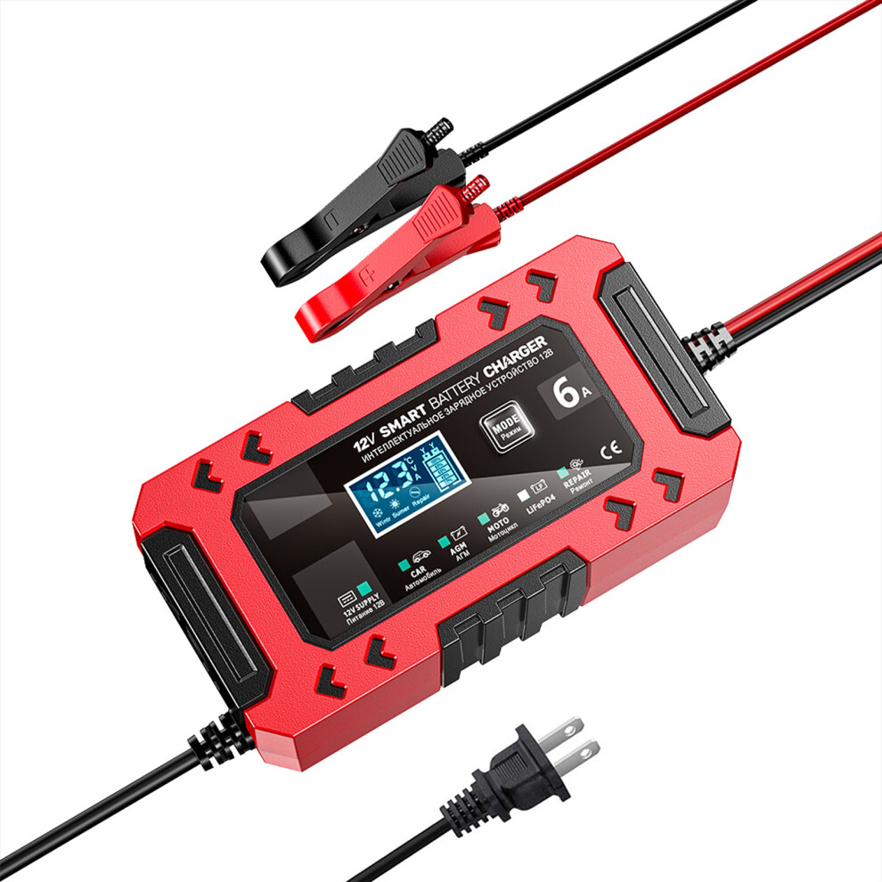(Red, One size) Car Battery Charger 12V 6A Pulse Repair LCD Display Smart Fast Charge AGM Deep Cycle GEL Lead-Acid Charger For Auto Motorcycle