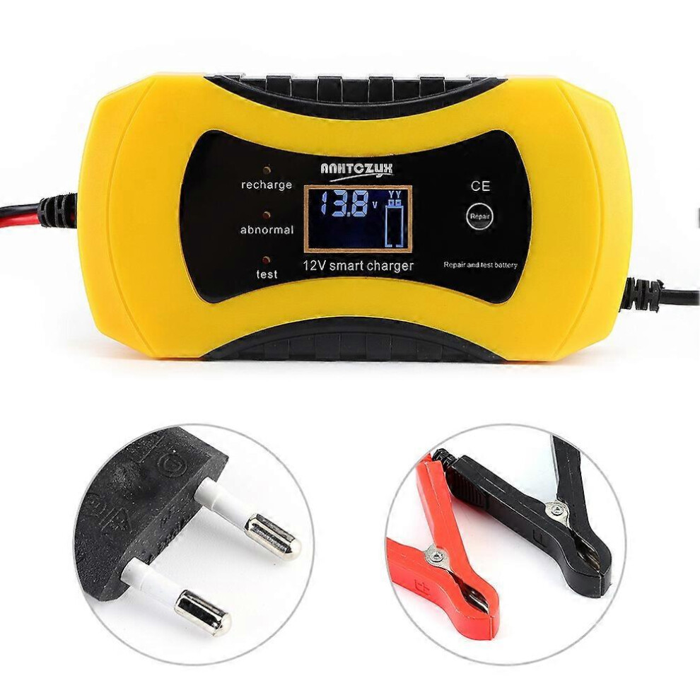(Yellow, One size) Car Battery Charger 12V 6A Pulse Repair LCD Display Smart Fast Charge AGM Deep Cycle GEL Lead-Acid Charger For Auto Motorcycle