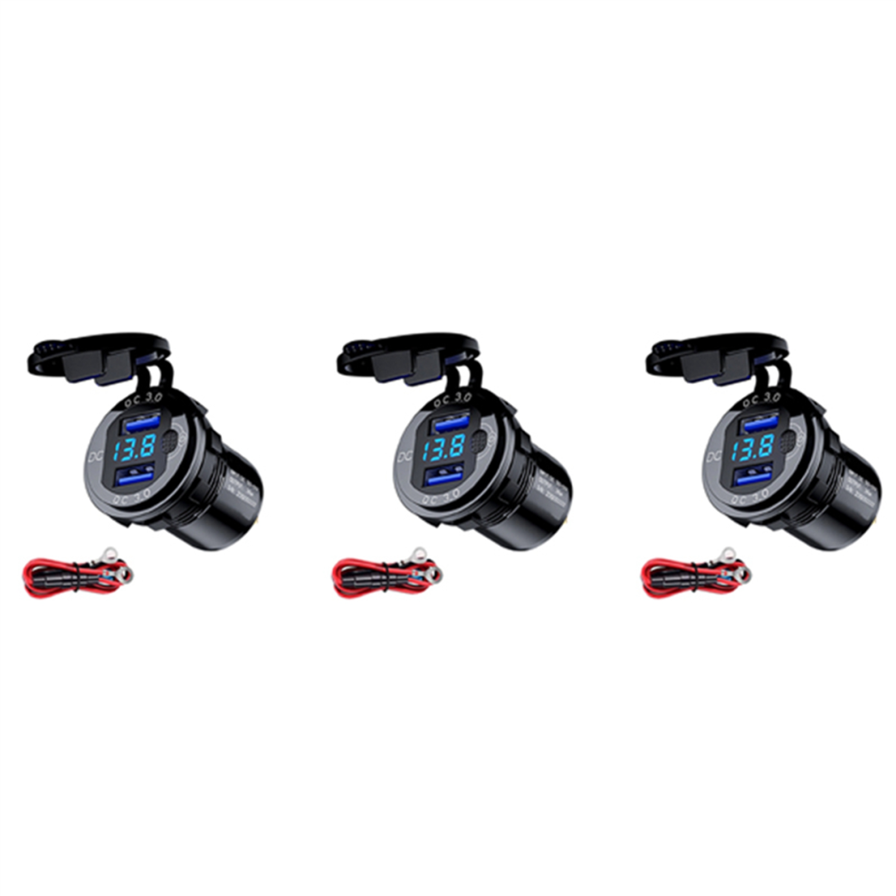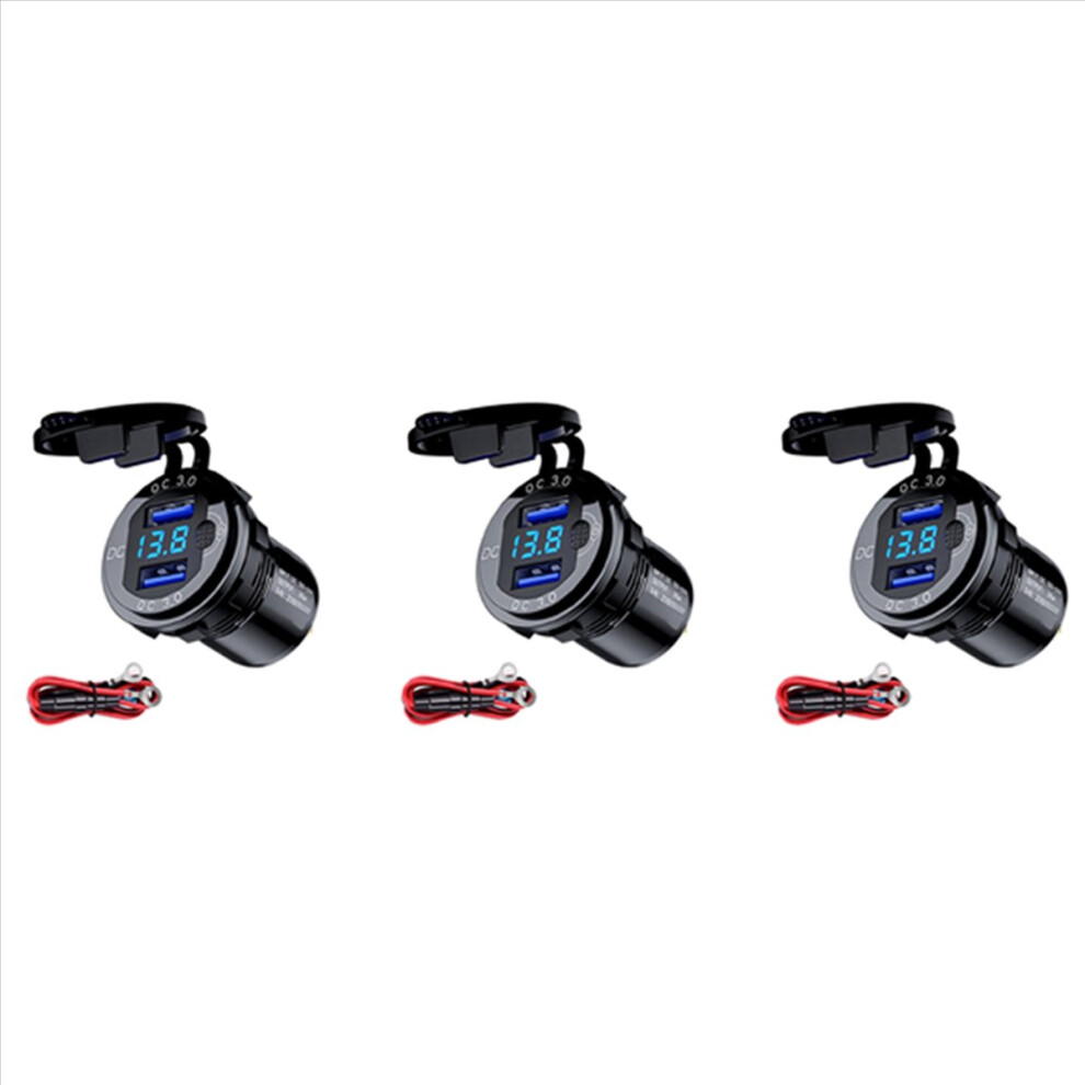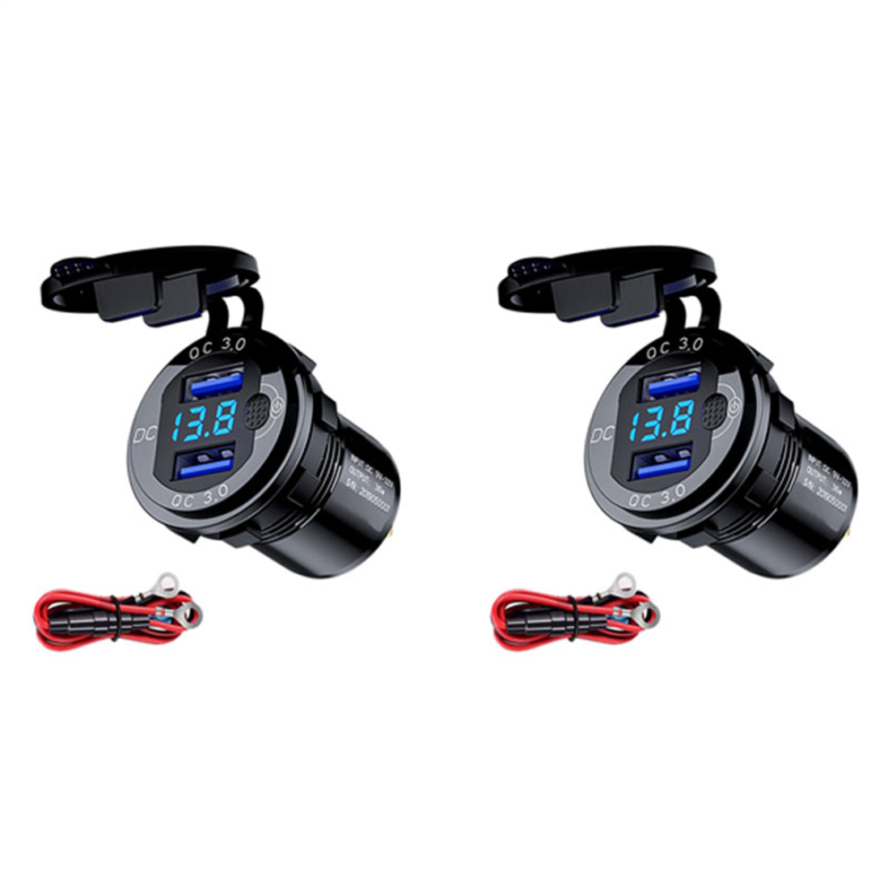 2X Aluminum Alloy Quick Charge 3.0 Dual Motorcycle USB Charger for Motorcycle Charger for