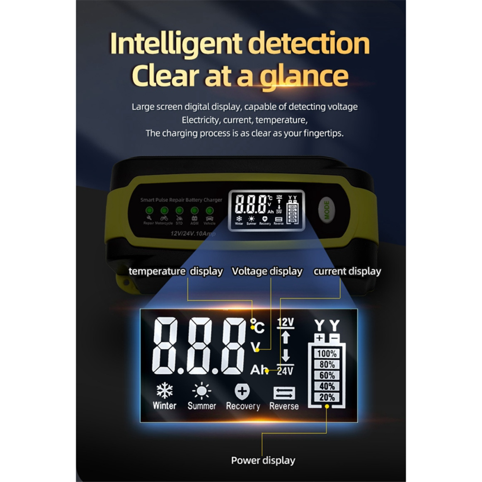 Intelligent Battery Charger 10A 12V-24V Battery Charger for Car Motorcycle Automatic Auto Maintainer with LCD Display Fo[32]