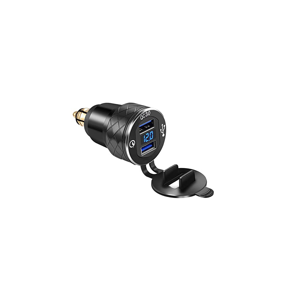 Aluminum Alloy Quick Charge 3.0 Dual Motorcycle USB Charger for BMW Motorcycle Charger for Triumph Tiger Ducati Cigarette Lighter Voltmeter QC3.0 DIN