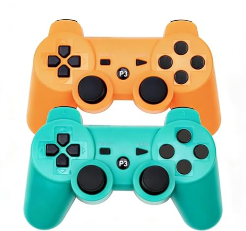 RUEIURI P-S3 Controller 2 Pack PS-3 Wireless controller Playstation 3 Controller Wireless Bluetooth Gamepad with USB Charger Cable for PS-3 ((Orange+Green))