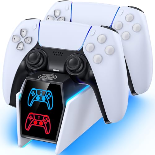LVFAN PS5 Controller Charger Station, Fast Charging Dock with Safety Chip Protection and LED Indicator, Dual Controller Charging Station for Playstation 5 Controller (White)