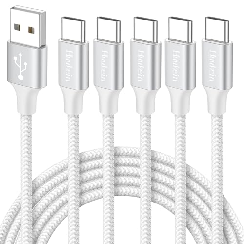 USB C Charger Cable 5Pack [1M+1M+2M+2M+3M], PS5 Controller Charger Cable Fast Charging, 3A Type C Lead for Samsung Galaxy S25 S24 S23 A55 A14 A15, Playstation 5, Xbox Series X/S, White