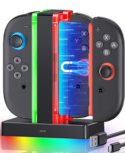 HELLCOOL Charging Dock for Nintendo Switch 2 Controllers–4-Port Joy Con 2025 Charger Station with Magnetic Design, LED Indicators & Charger Cable | Safe Fast Charging for Switch 2 Accessories