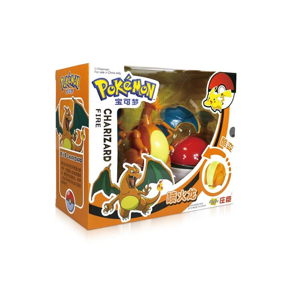 (Charizard With Box) Original Box Pokemon 12 Styles Pokeball Deformation Toy Set Anime Figure