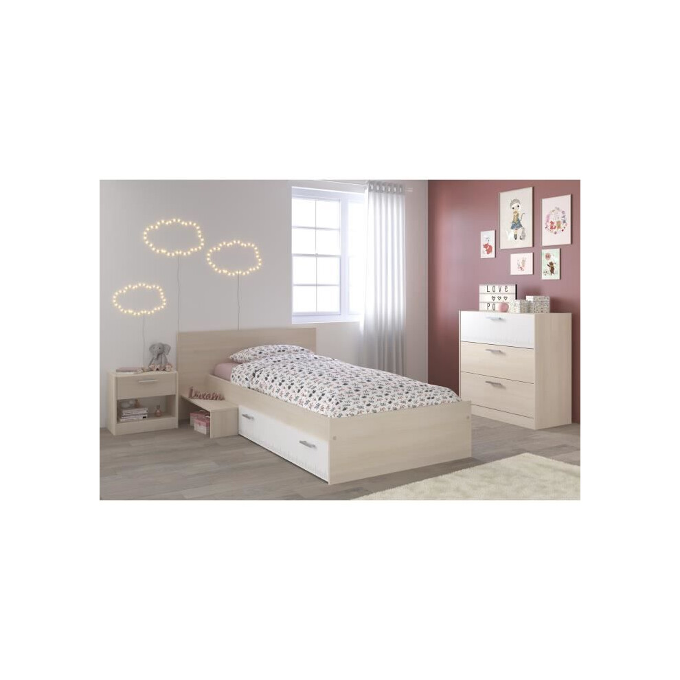 PARISOT Complete Children's Bedroom contemporary style light and white acacia decor - L 90 x L 190 cm - CHARLEMAGNE