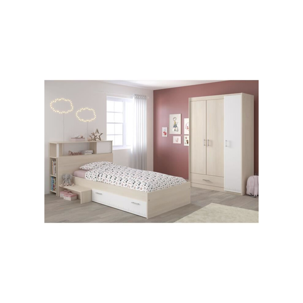 PARISOT Complete children's bedroom - Headboard + bed + wardrobe - Contemporary style - Light and white acacia decor - CHARLEMAGNE