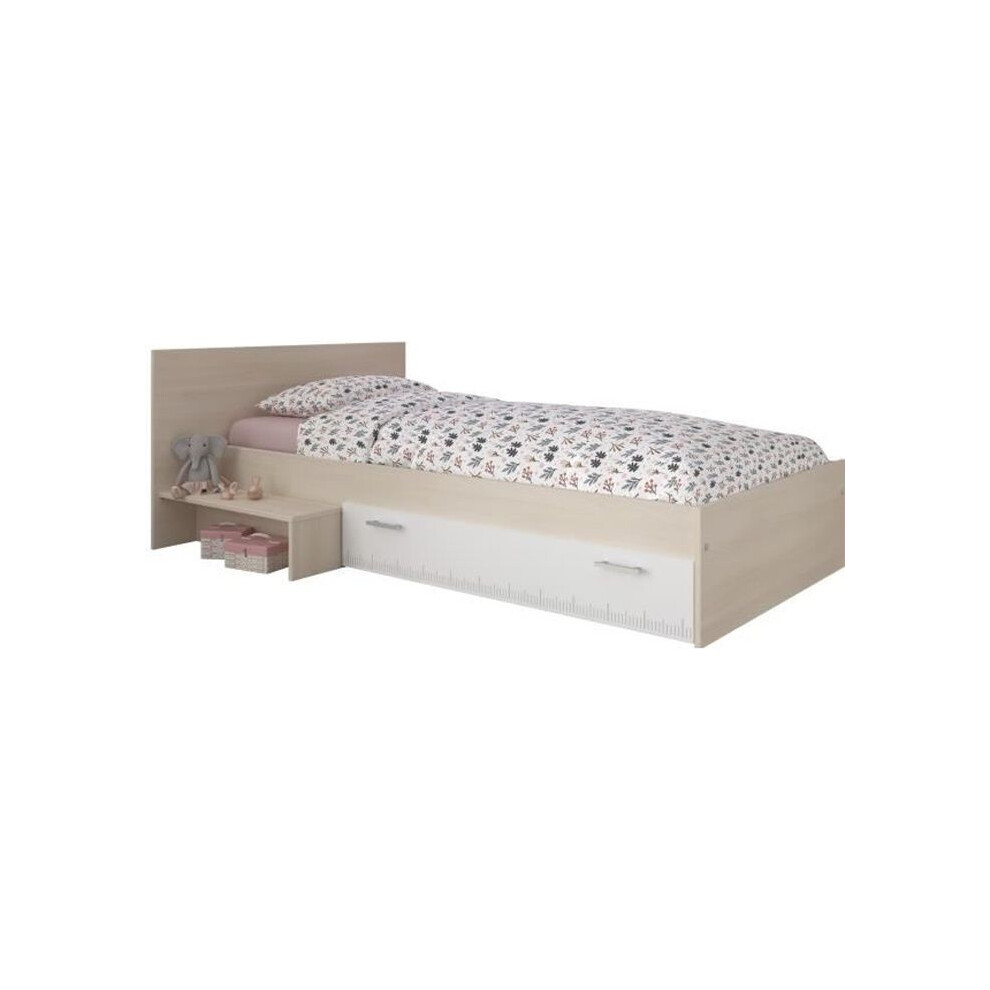 PARISOT Children's bed l 90 x l 190 cm - Acacia and white drawer decor - Contemporary - CHARLEMAGNE