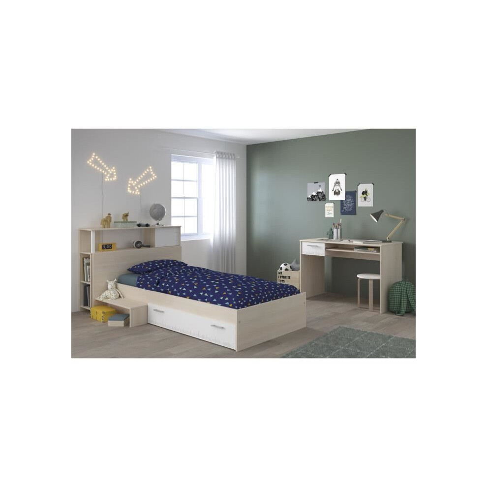 PARISOT Complete children's bedroom Headboard + bed + desk - Contemporary style - Light and white acacia decor - CHARLEMAGNE