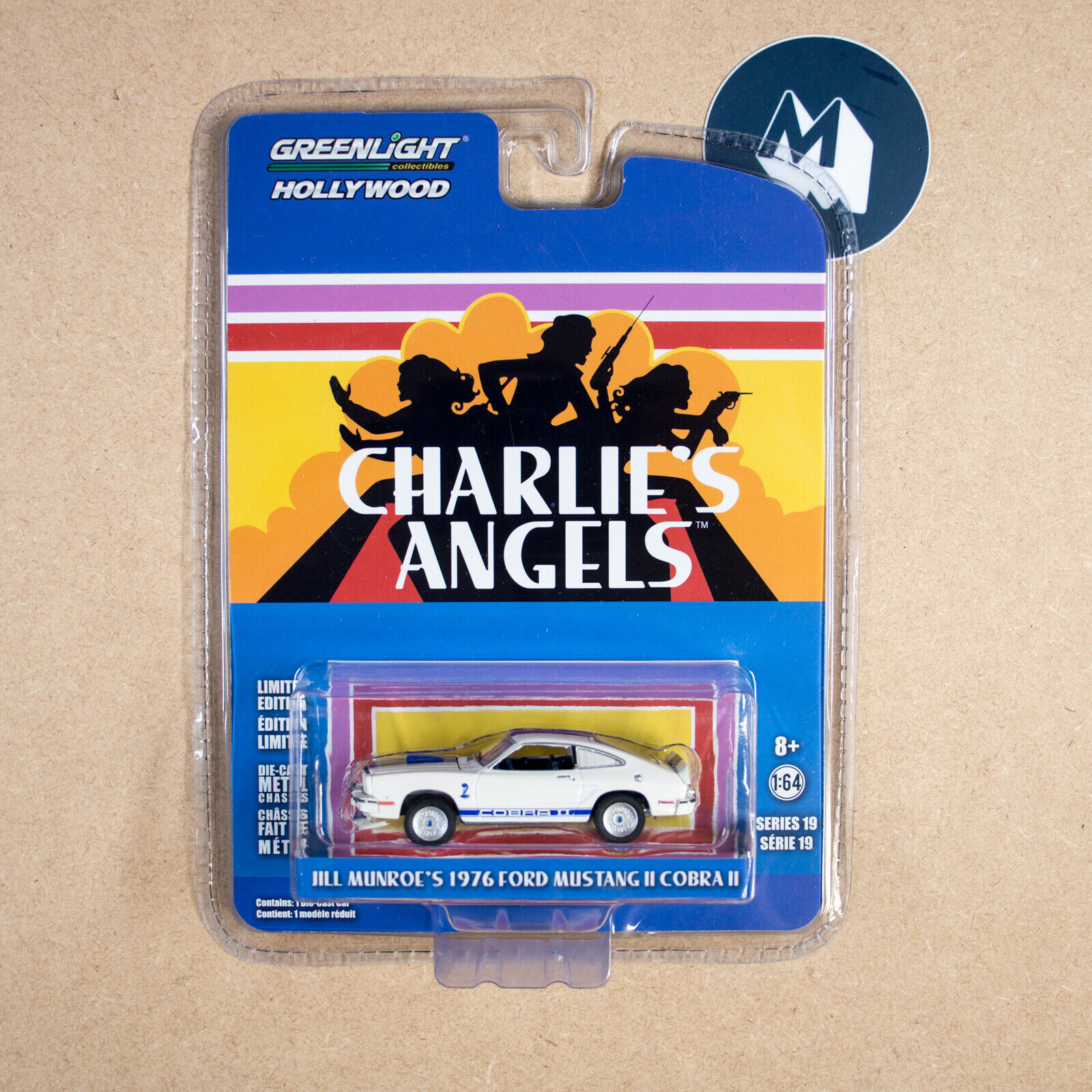 greenlight entertainment Jill Monroe's 1976 F0RD Mustang Charlies Angels white vehicle 1.64 scale limited edition diecast model