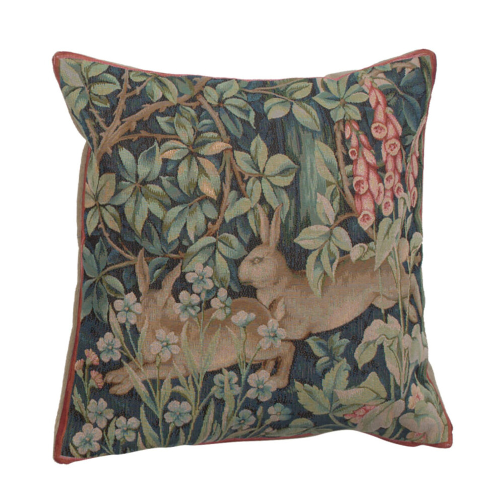 Charlotte Home Furnishings Inc. Two Hares in A Forest Large Square Throw Pillow Cover - 19 X 19 Decorative Boho Cushion Cotton Room Decor Jacquard Wov