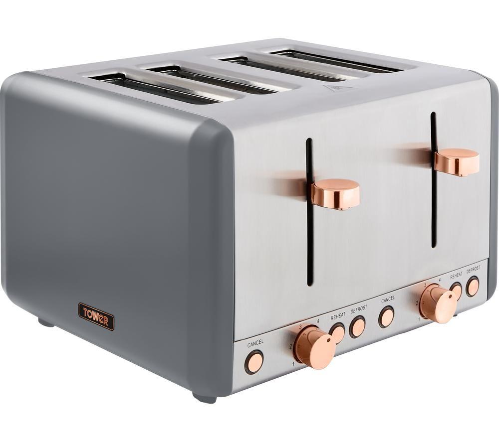 TOWER Cavaletto T20051RGG 4-Slice Toaster - Grey & Rose Gold
