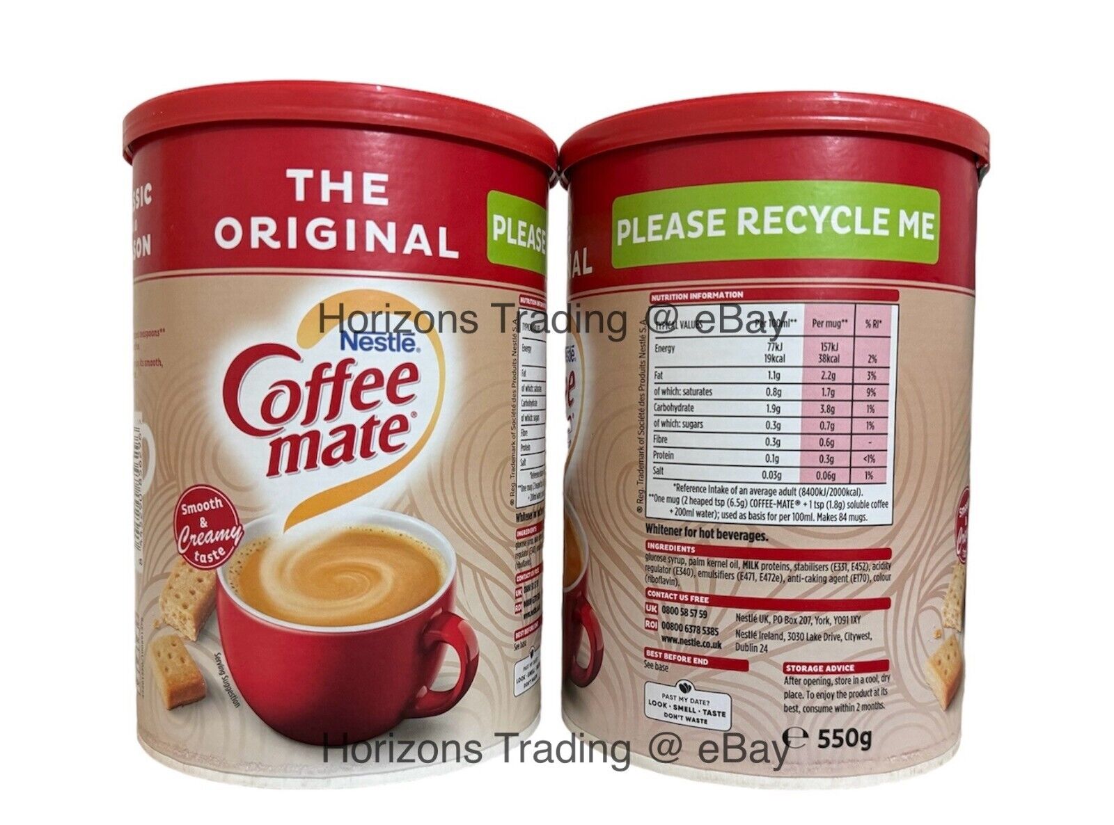 Nestle Coffee Mate Original 2 x 550g Coffee Whitener Tub for Smooth & Creamy F&F