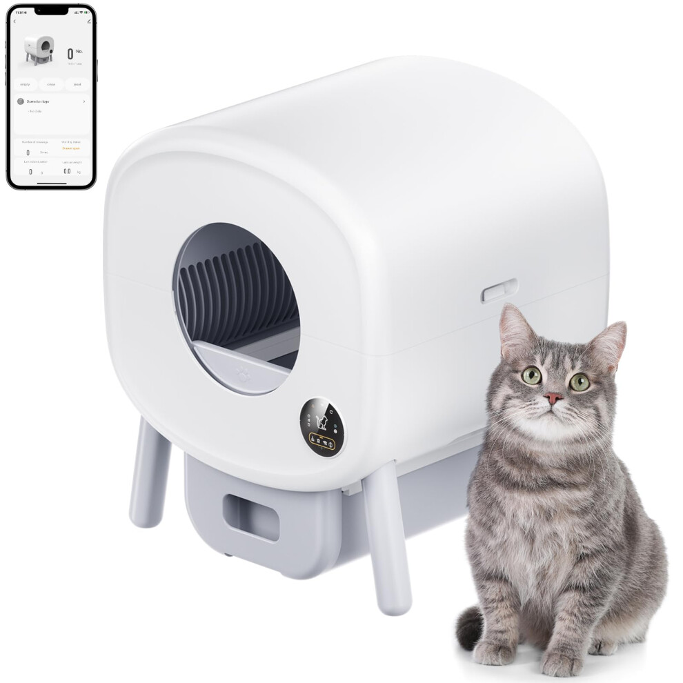 Self Cleaning Cat Litter Box,Wifi Connection App,No Need To Shovel Manually, With Garbage Collection Box And Garbage Bag
