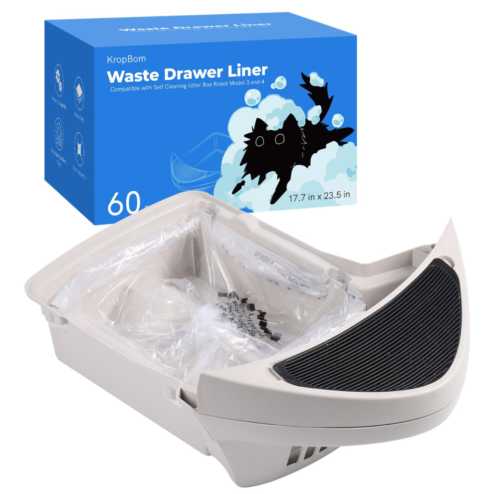 60 Count Self Cleaning Litter Box Bag Liners Compatible with Cleanpethome Drawstring Heavy Duty Cat Litter Trash Bags Refill Waste Bags for Automatic