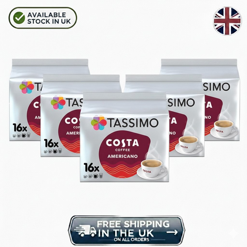 Tassimo Costa Americano Coffee Pods x16 Pack of 5 Total 80 Drinks Pods UK Coffee