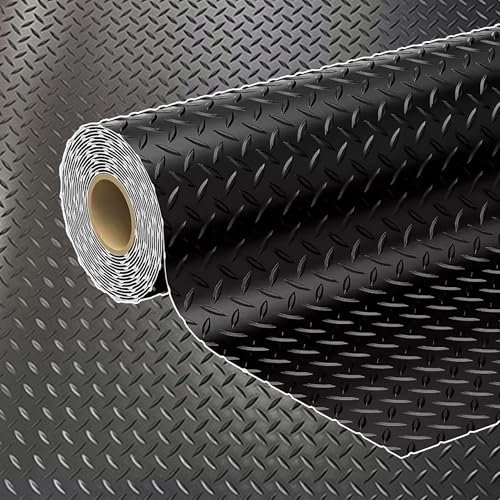 Kgfvesdc Garage Floor Mats,Waterproof Garage Flooring Matting,Checker Plate Rubber Matting For, Indoor & Outdoor, Non-Slip, Waterproof & Easy To Cut, Work Areas, Ramps,Vans & Sheds, Warehouse(black)
