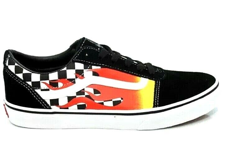 New Kids Unisex VANS WARD FLAME CHECKER Leather Lace UP Trainers BLACK UK 12 I