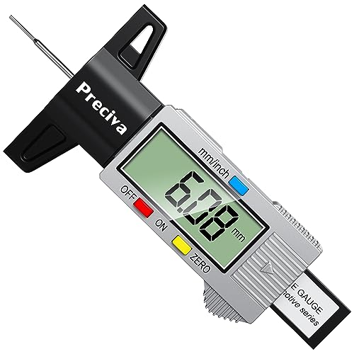 Tyre Tread Depth Gauge, Preciva Silver 0-25.4mm/Inch Digital Tire Checker UK, Tyres Depths Measuring Tool with Large LCD Screen for Cars, Trucks, Vans