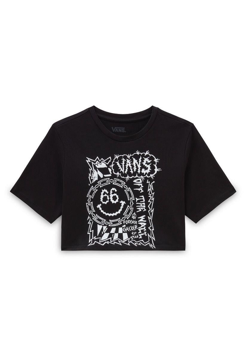 Vans Womens Forever Checker Crew Cropped Women’s T-Shirt in Black Cotton - Size X-Small