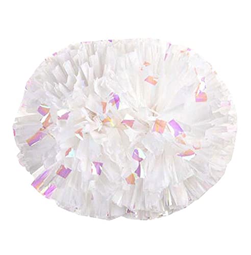24PCS Cheerleading Pom Poms Metallic Foil Plastic Pom Poms with Baton Handle for Game Sports Squads Dancing Party Football Basketball Club Spirit Sports Stage Performance Celebration (white)