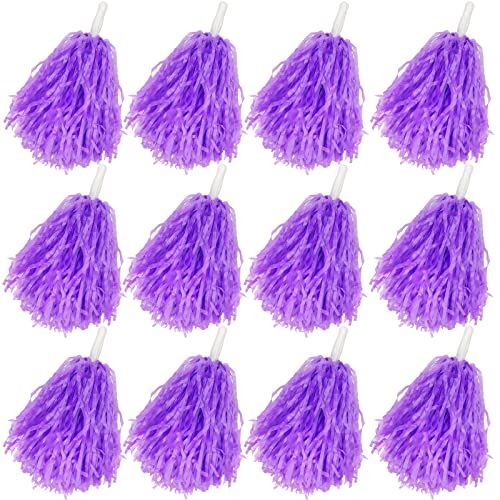 Faxco 12Pack Plastic Pom Poms Cheerleading Pom Poms Sports Dance Cheer Plastic Pom Pom for Rooters,Cheering Squard,Cheering Team (Purple)
