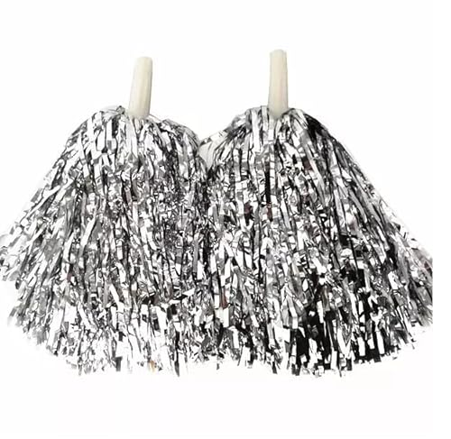 HshDUti Cheerleading Pom Poms with Handle for Team Spirit Sports Dance Cheering Kids Adults Foil Plastic Metallic Cheerleader Pom Poms Silver